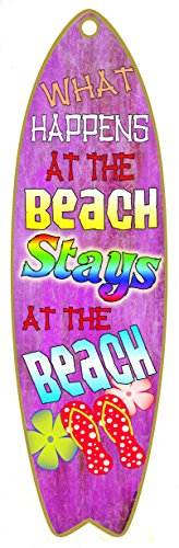 What Happens At The Beach Stays Nautical Ocean Surfboard Sign 5"x16"