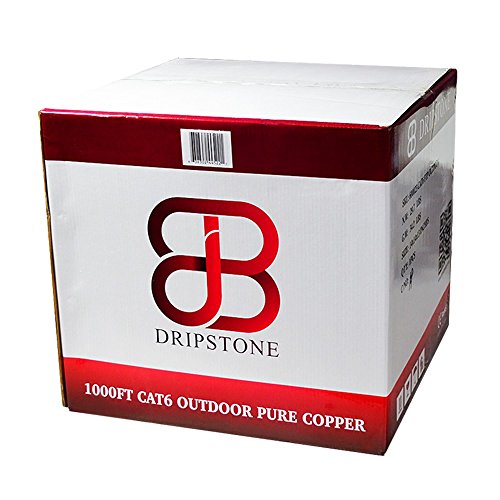 Dripstone 1000ft CAT6 Bare Copper FTP (Foiled Twisted Pair) Direct Burial Solid Ethernet Cable 23AWG CMX Outdoor Waterproof Wire HDPE insulated Polyethylene