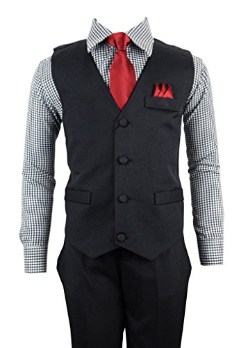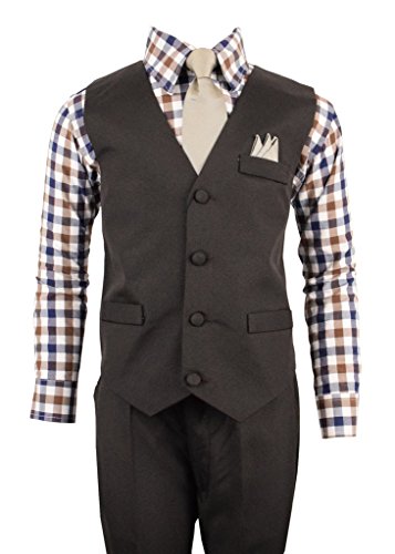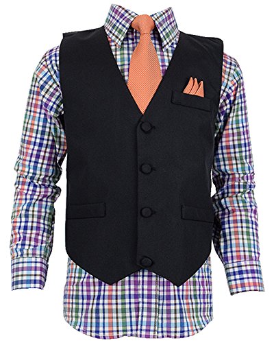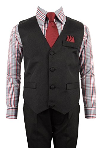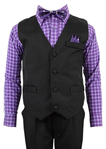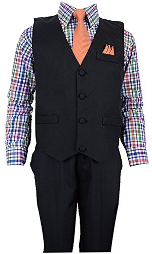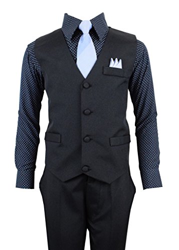 Four piece set includes: Vest, pants, button down dress shirt, tie, handkerchief