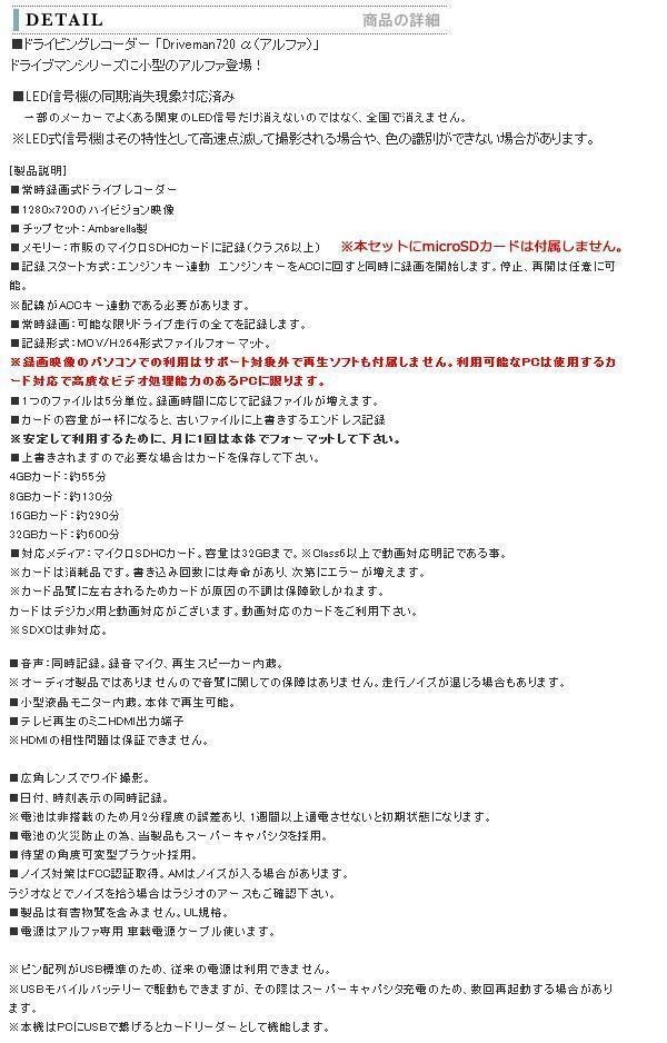 | セット内容 | 本体 車載用電源ケーブル 角度可変式装着ブラケット(両面テープ装着済) 予備両面テープ 取扱説明書兼保証書(保証期間1年) |