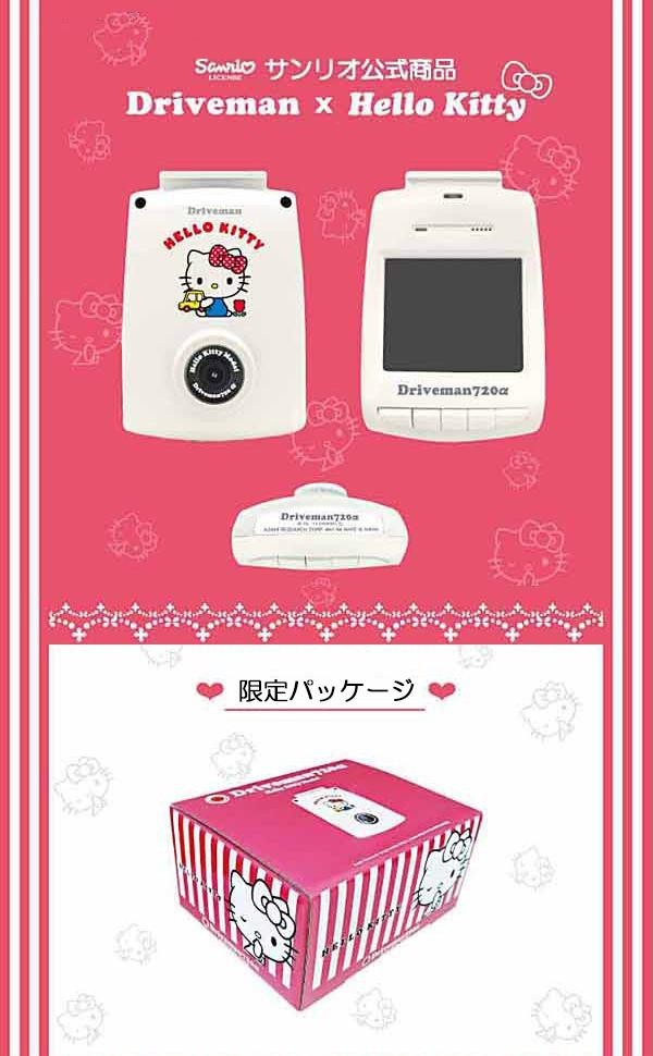 「Driveman 720α」にハローキティモデルが登場(本商品はサンリオの承認を得て発売する公式モデルです)。リアルで高品質な映像音声を、自宅や旅先で手軽に楽しむことができ、予期せぬ事故など、万が一のトラブル発生時も心強い味方となります。 |