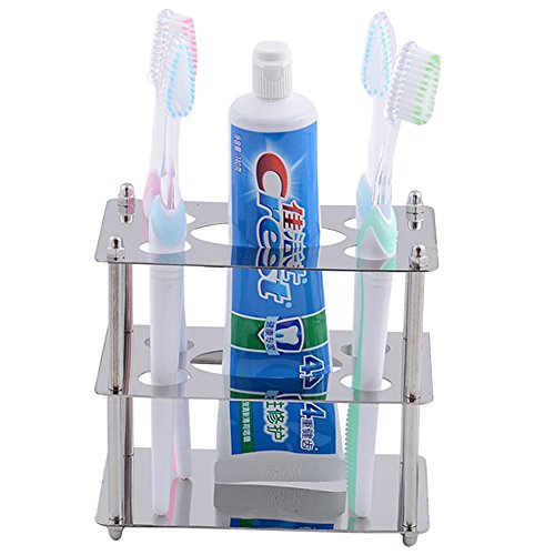Ozzptuu Stainless Steel Bathroom Toothbrush Toothpaste Holder Toothbrush Razor Stand Organizer (Rectangle)