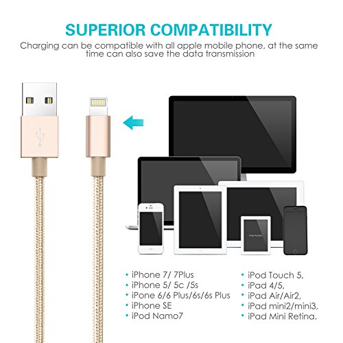 The UTHMNE lightning cable is ideal for varied occasions, you can still use your devices while charging with an adapter in your bedroom, kitchen, and at the backseat of your car. Comfortable and convenient experience no more annoying messages, no constant reminder in the phone screen telling you the frustrating truth that the cable cannot charge your favorite device. Feature tangle-free nylon braided USB cable with aluminum connector has a stronger and flexible nylon material is stress and stretch resistant and protects against day-to-day wear and tear. Fast charging and synching lightning cable for ultimate convenience for apple mobile device users. Easy to carry, it suits every occasions, home, office, car and so on. Compatible model: iPhone 7/7 plus/6s /6splus/ 6 plus/ 6 / 5s / 5c / 5, iPad air / air 2, iPad mini / mini 2 / mini 3, iPad (4th generation), iPod Nano (7th generation), and iPod touch (5th generation). Package content: 3pack 3/6/10ft nylon braided lightning cable service: 24-hour customer service. If you have any question please contact us immediately.Feature