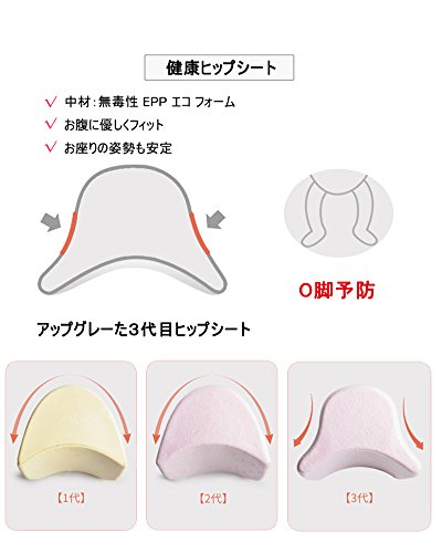 ヒップシート+ベビーキャリア 『ヒップシート』とは、お子様を座らせる椅子のようなもので、 ·“パパ?ママの腰にベビーチェアを装着して抱っこをする”というイメージでOK。 ·親子ががんばらなくても一緒にいられるように、赤ちゃんとパパやママ両方の快適性にこだわって作られました。 ·ヒップシートを着用することで前向き抱っこ、対面抱っこ、横抱きが出来る多機能ベビーキャリアです。 ·腰の荷重をバランスよく分散。長時間抱っこできるような設計です。 ·赤ちゃんのももが自然に上がり、自然なすわり姿勢で赤ちゃんも快適。 ·ヒップシートにキャリアストラップを結合させることができます。 ·ストラップを装着すれば両手が使えるようになり、おんぶも可能。 【特徴】