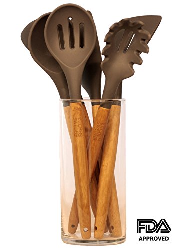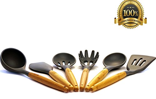 - PRO COOKING UTENSILS SET: These utensils stay strong under pressure; It doesn't matter what you've got to stir or lift because the super-strong nylon core means no floppy ladles, spatulas or turners; Bamboo and Silicone cooking utensils will not scratch the non-stick finish on your pans, and will not harm other your finest cookware. Clean up is a breeze with just a quick wash with soapy water.