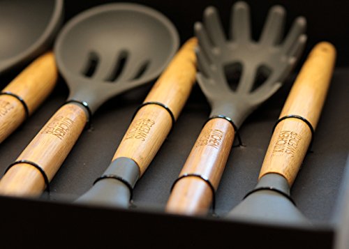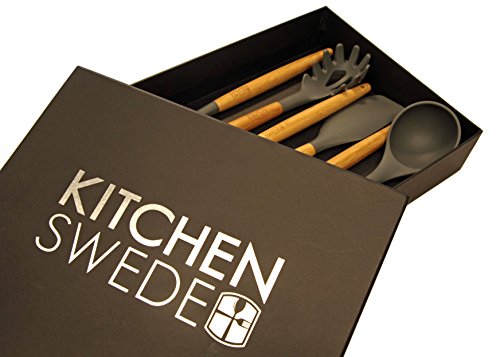 Kitchen utensil set - 6 piece nonstick Kitchen utensils set made from bamboo and silicone exclusive black giftbox - Only from KitchenSwede