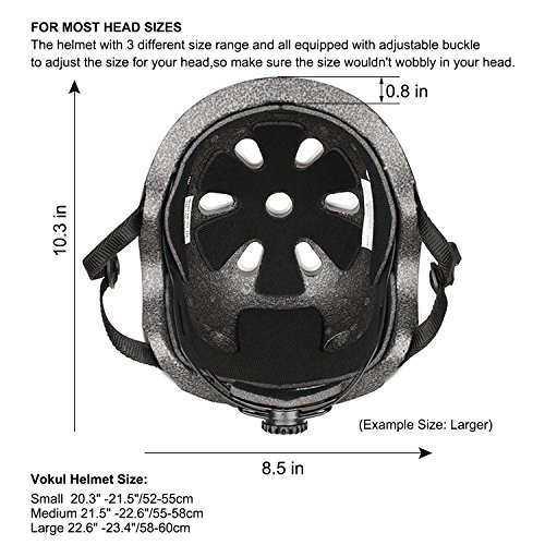Studio : Vokul Publisher : Vokul Product Description Vokul Multiple Sports Skating Helmet Our products are specially designed for Multi-sports activities, such as skateboarding, cycling, BMX biking, inline roller skating. Safety protection is our primary concern and we will continue to provide the best products for our customers. Adjustable Straps These skate helmets has three sizes to choose from variation. Adjust the strap and side buckle when feeling too tight or too loose, and they can wear it comfortably. Impact Resistance THis helmet is the anti-shock function, and we understand how important people value the quality of helmets for the Sport Safety. That's why our skate helmets use the quality hard shell, tough and durable PVC PC and EPS foam to protect the head from direct impact and absorb the impact at a reasonable level. Ventilation The special aerodynamic design of multiple vents let air go through the skateboarding helmet, the breathable EPS foam would reduce sweating during hot days. This feature would help reducing the temperature and keep stay cool when performing intense body movements. Suitable Sports: Skateboarding Skateboard Scooter Skating Inline Roller Skate Cycling Bicycle Mountain BMX Biking Two wheel electric Board Electric Self-balancing board Other outdoor or indoor activities which need impact protection gear 0