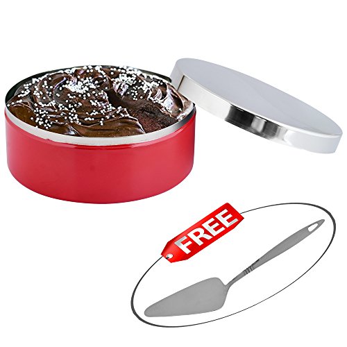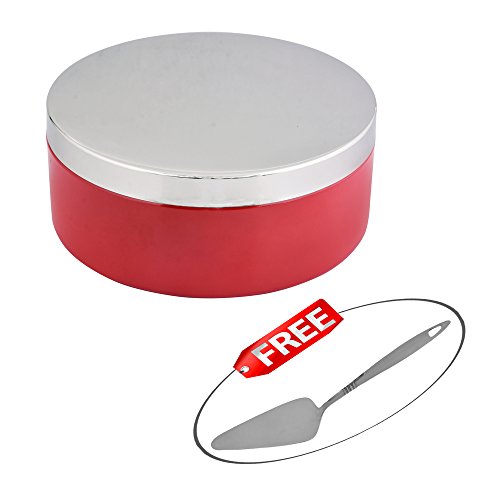 Kosma Stainless Steel Storage Canister for Cakes-Cookies -Biscuits- Sweets-Nuts-Craft Accessories in Vibrant Red Colour with Stainless Steel Lid - 26.5cm & "FREE" Cake Server