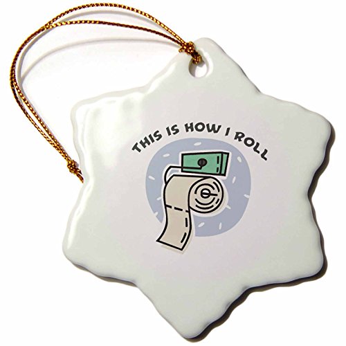 3dRose LLC orn_102575_1 Porcelain Snowflake Ornament, 3-Inch, "This is How I Roll Funny Toilet Paper Roll Design"