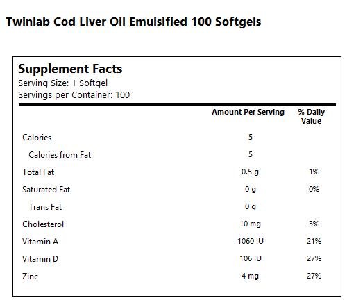 -. Title : Twin Lab lsified Cod Liver Oil Softgels, 100 Count