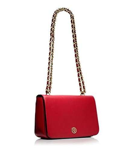 Product Description Named for Tory's parents - Buddy and Reva Robinson - it's a modern classic. The epitome of understated chic, our new Robinson Adjustable Shoulder Bag is made of the highest-quality, scratch-resistant leather. The chain strap is convertible so it can be worn doubled over the shoulder or long and cross-body - perfect for days on the go. Leather. Flap with magnetic snap closure. Interior zipper pocket and open pocket. Exterior slide pocket at back. Leather and chain shoulder strap. Can be worn as a cross-body or a short shoulder bag. Height: 5.25" (13 cm) Length: 9" (22 cm) Depth: 3.5" (8 cm) 0