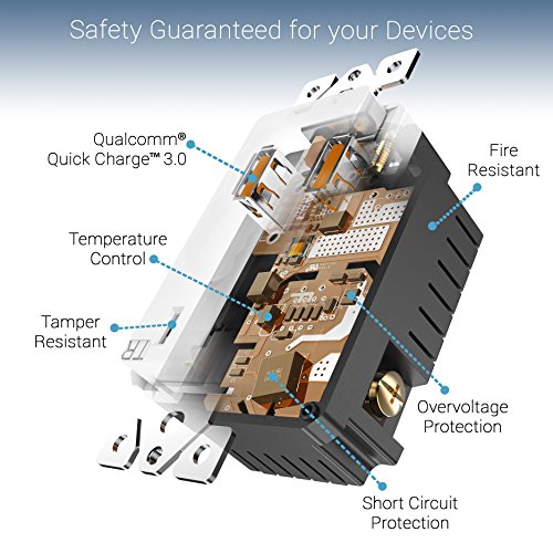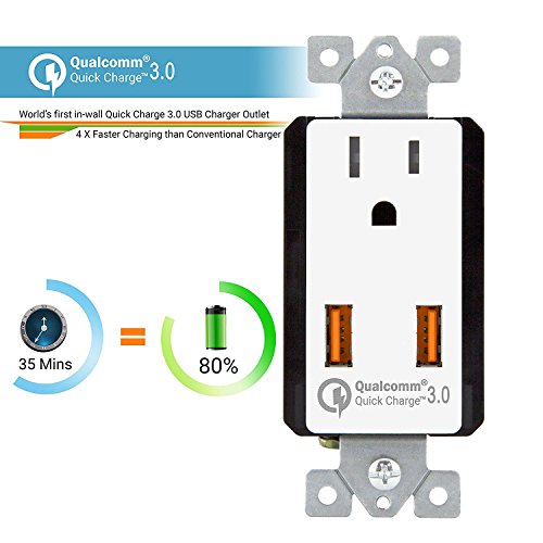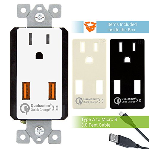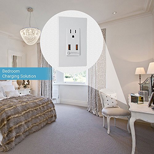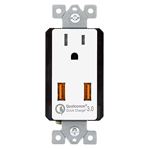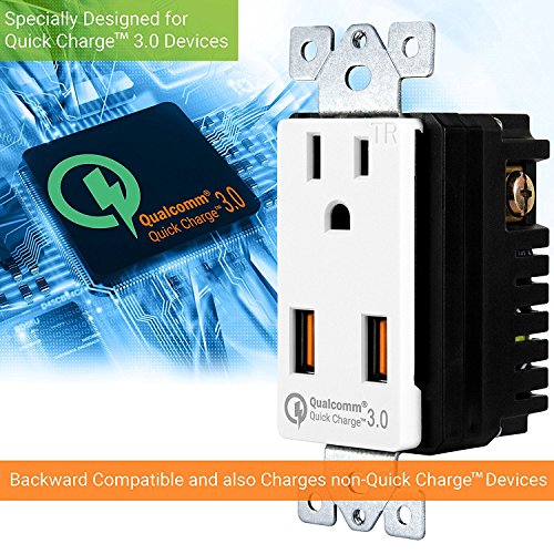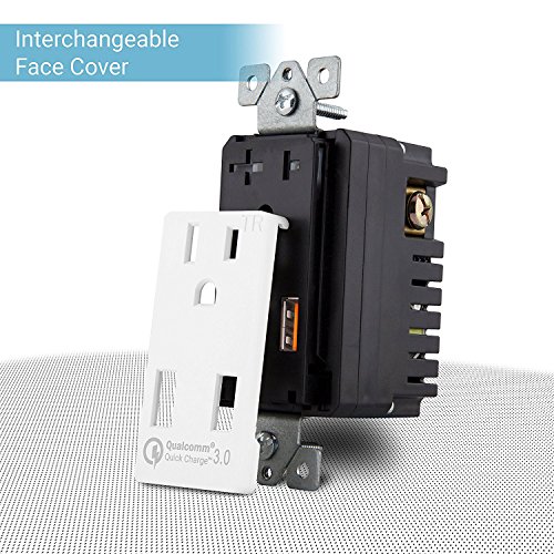 Top Greener TU1152QC3-W Wall Outlet with USB, 36W Qualcomm Quick Charge 3.0 USB Wall Charger, for Samsung Galaxy, LG G5, HTC 10, Nexus, iPhone X / 8, Interchangeable Face Covers