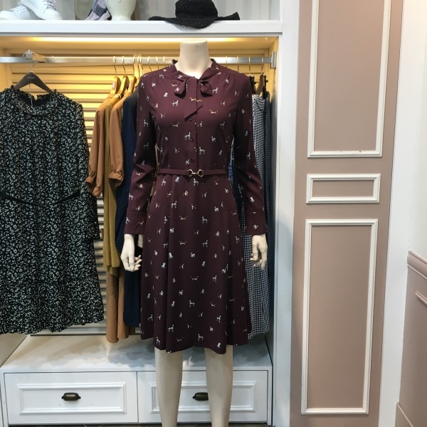 강아지 프린팅으로 목선리본 포인트 원피스 입니다