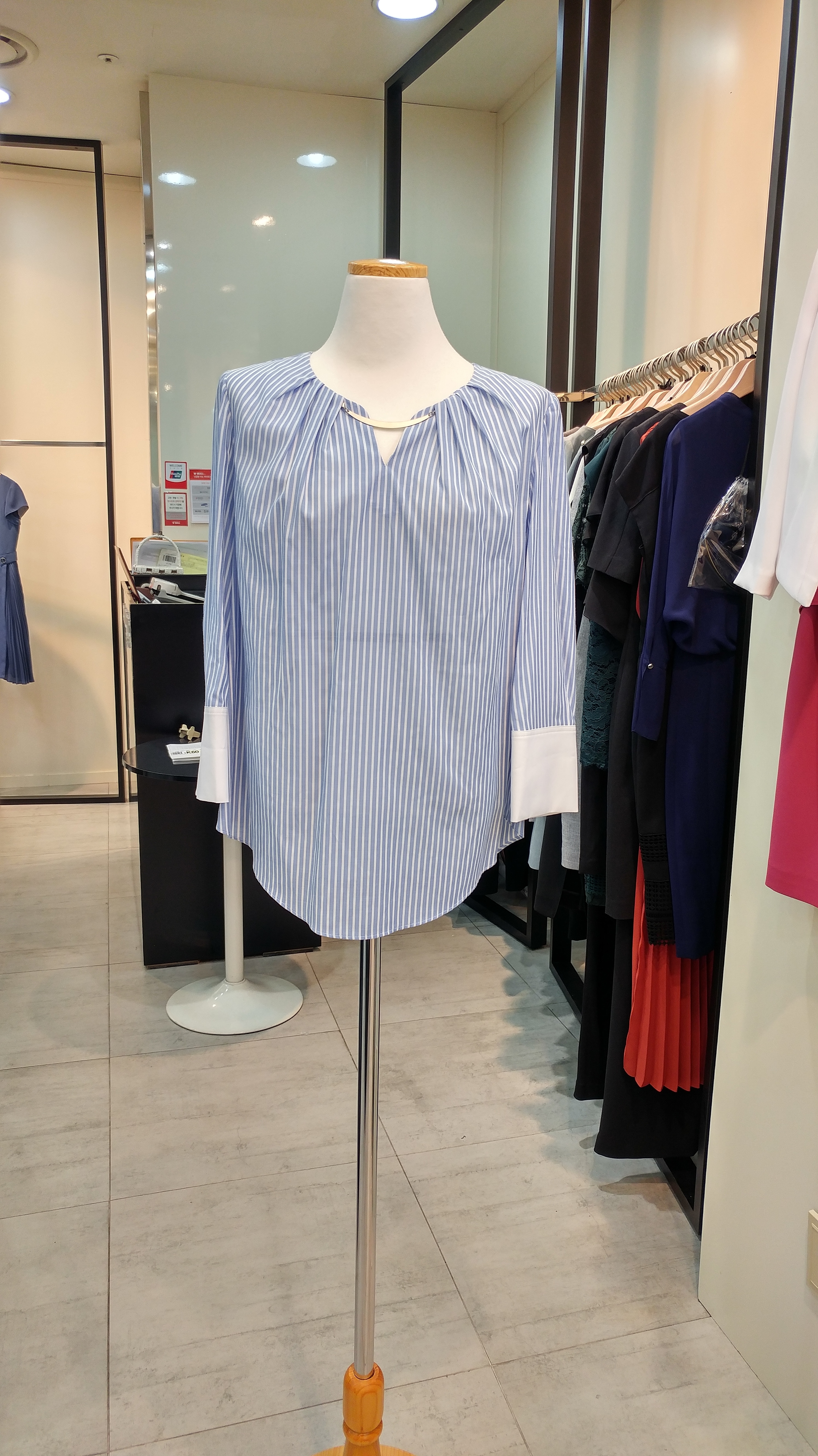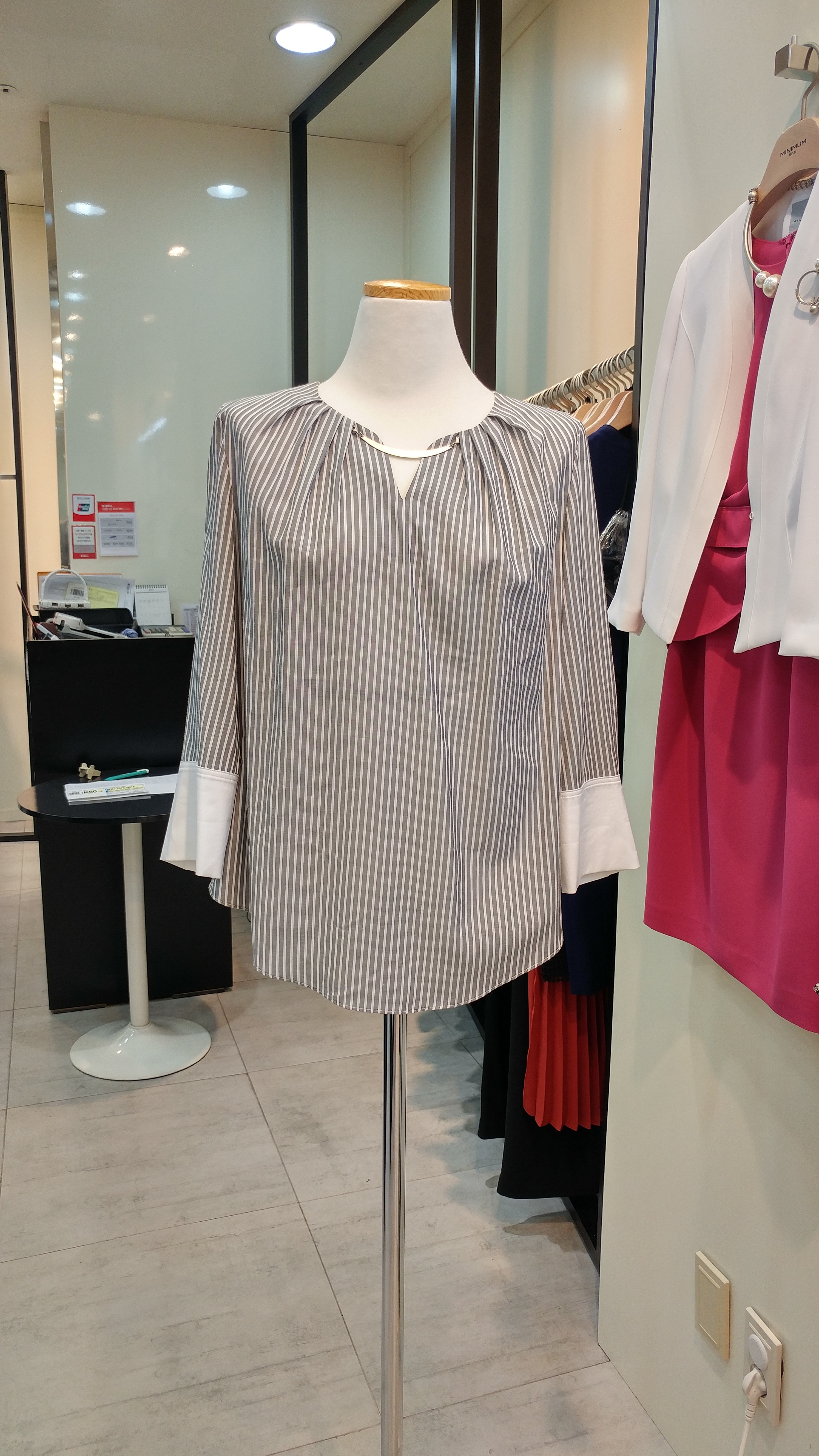스트라이프 루즈핏 블라우스입니다^^  면소재의 청량감과 편안함이 돋보이는 스타일 총장66