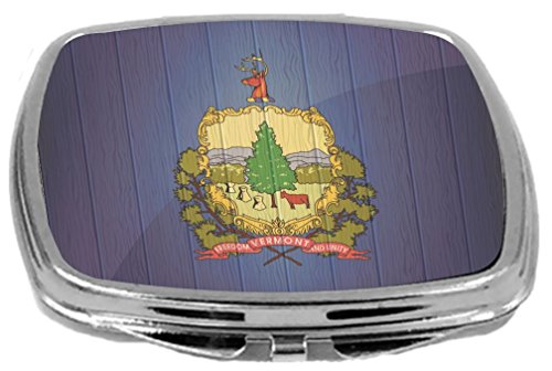 Rikki Knight Compact Mirror on Distressed Wood Design, Vermont Flag, 3 Ounce