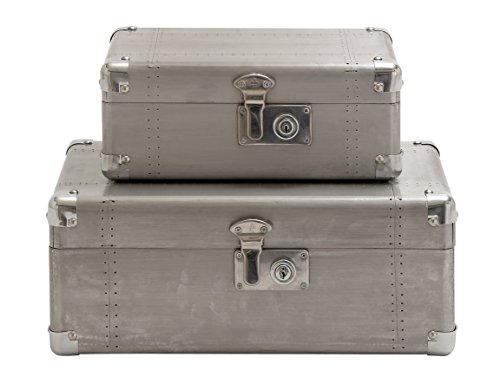 Benzara Antique Styled Wood Aluminum Case, Set of 2