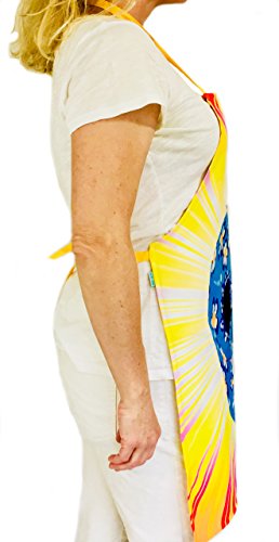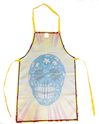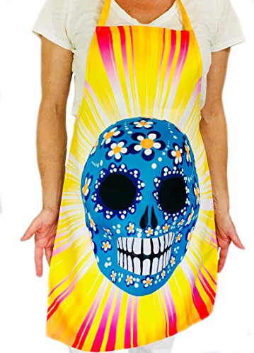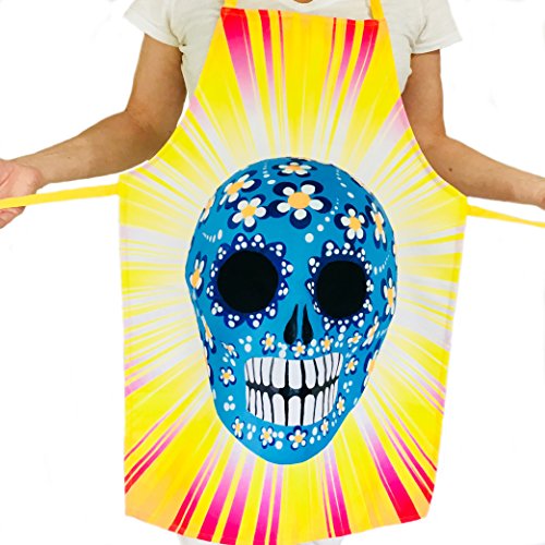 Yellow Kitchen Apron for Women with Blue Sugar Skull