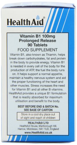 Product DescriptionHealthAid Vitamin B1 (Thiamin) 100mg - Prolong Release - 90 Tablets0