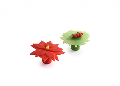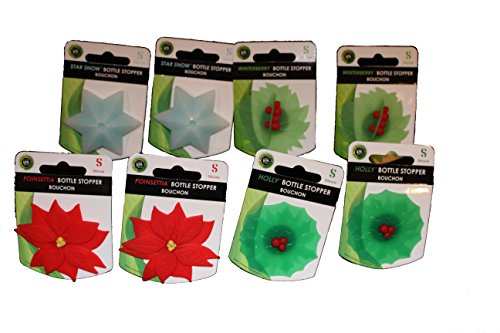 Charles Viancin, Holiday Bottle Stopper: Pointsettia, Holly, Winterberry, Star Snow, Set of 8 …