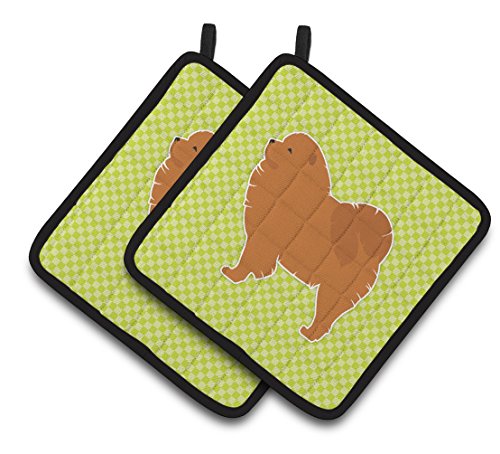 Caroline's Treasures Chow Checkerboard green Pair of Pot Holders BB3851PTHD, 7.5HX7.5W, Multicolor