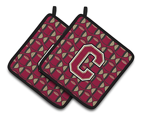 Caroline's Treasures Letter C Football Garnet & Gold Pair of Pot Holders CJ1078-CPTHD, 7.5HX7.5W, Multicolor