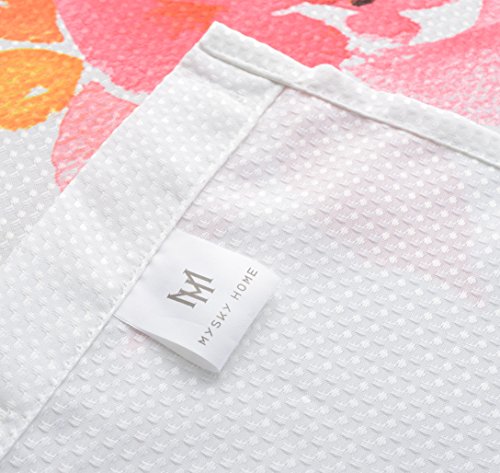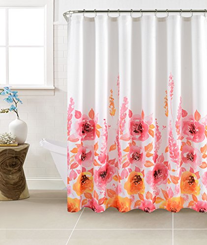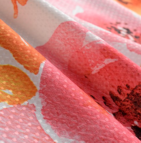 Mysky Home Floral Design Print Waffle Check Waterproof Polyester Fabric Bathroom Shower Curtain Liner with Hooks 70 x 70 inch, Red Flower