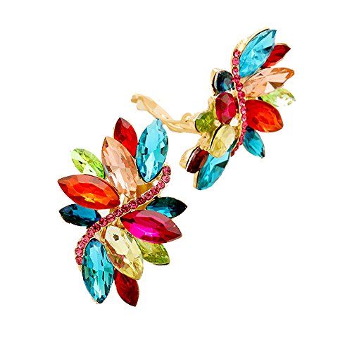Modern Multi Color Crystal & Rhinestone Clip On/Non Pierced Earrings Accented with Goldtones 2 in