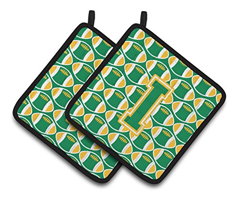 Caroline's Treasures Letter I Football green & Gold Pair of Pot Holders CJ1069-IPTHD, 7.5HX7.5W, Multicolor