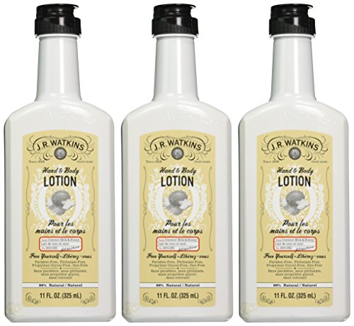 J.R. Watkins Natural Hand & Body Lotion, Coconut Milk & Honey, 11 Ounce (Pack of 3)