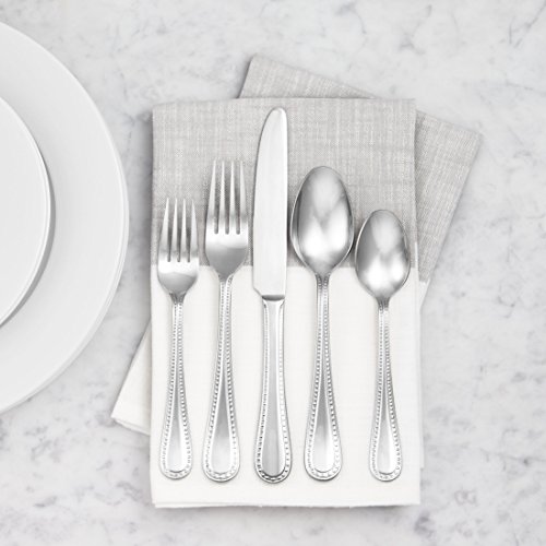 AmazonBasics 20-Piece Stainless Steel Flatware Set with Pearled Edge, Service for 4