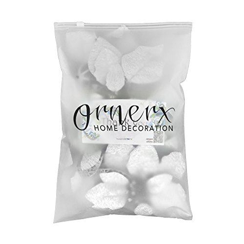 - White poinsettia bush artificial flowers with silver glittered trim