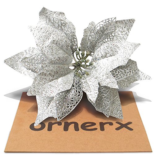 Ornerx 10" Glitter Poinsettia Flower Christmas Tree Ornament Silver 8 Pcs