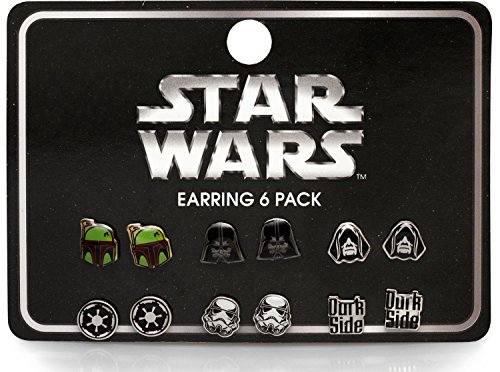Wear these Star Wars Earrings featuring your favorite characters! Each set contains a Boba Fett pair, a Darth Vader pair, a Stormtrooper pair, a "Dark Side" pair, an Imperial logo pair and an Emperor pair.Feature