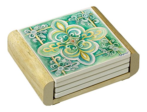 CounterArt Absorbent Coasters in Wooden Holder, Teal Tile, Set of 4