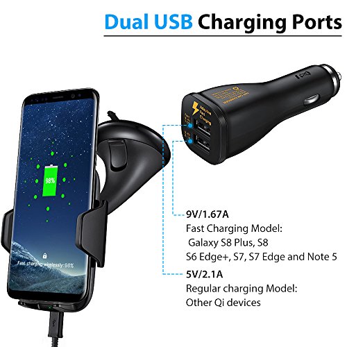 Fast wireless car charger mount: Fast charge modes are ONLY available for Samsung Galaxy S8, S8 Plus, S6 Edge+, S7, S7 Edge and Note 5. Other devices will charge at regular speed. like the Galaxy S6, Galaxy S6 Edge, Google Nexus 5/4, LG G3, Motorola Droid MAXX/Mini, HTC Droid DNA/8X, Nokia Lumia 920/928, Some devices may require an additional wireless charging receiver (Not Included).