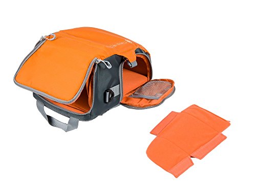 eine Seitentasche (eine Netztasche), an den beiden Seiten des Holsters befinden sich Gurten mit Klickschnallen als Verschluss, Aussenmasse 31x16x19cm , Innenmasse 29x13x17cm , Gewicht: 580g