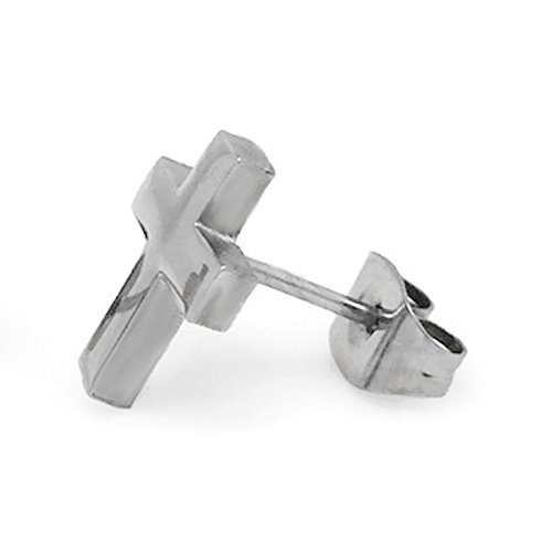 Wear your faith in style with these mirror finish, 1/2" x 1/4", hypoallergenic plain cross stud earrings. Why choose stainless steel? Unlike silver, it will NEVER TARNISH and it is not susceptible to scratches, dings or dents. Stainless is also a great alternative for people that have skin reactions with other types of metals. Your earrings will ship in a Loralyn Designs box. Great for gift giving!Feature