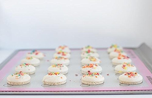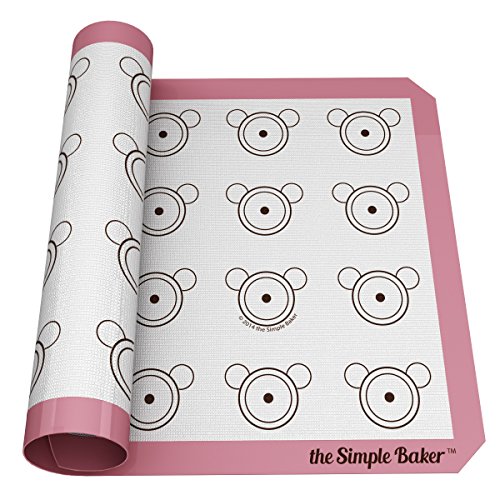 [SALE] Simple Baker Premium Non-stick Silicone Baking Mat for Macarons - Half Sheet Size 20 cookie template - Bonus Digital Macaron Recipe Book (Pink)