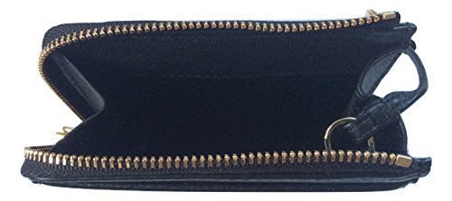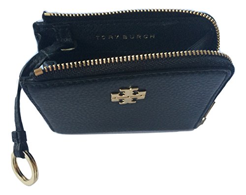 Product Description Wrapped in soft pebbled leather with polished golden tone hardware, this slim card case is perfect to hold your ID, cards and cash. It has a zippered closure on the right side and top with accordion sides. The interior is lined in custom print fabric and offers a built in key ring. The front is accented with Tory's iconic Stacked T logo and the back offers an open slip pocket. It measures just 4.5" (L) x 3.75" (H) and has an MSRP of $135.00. 0