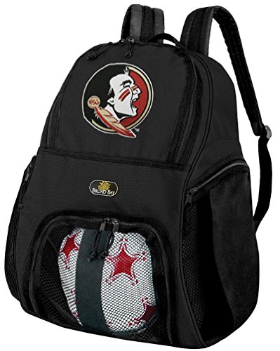 Studio : Broad Bay Publisher : Broad Bay Binding : Misc. Product Description This well made college logo FSU ball backpack is the perfect solution for soccer or basketball practice. Made of heavy duty 600D polyester with soft backing, the mesh paneled interior ball compartment allows you to quickly and easily zip your ball right in and keep it separate from the main compartment. The main compartment measures approximately 10in x 13in x 9in after the ball is inside and still has plenty of room for your shin guards, cleats, and a change of clothes. Two zippered side compartments with mesh panels allow you to keep your water bottle in one and your keys and cell phone in the other. Backpack features adjustable padded shoulder straps, hand strap and dual zipper pulls on both the main compartment and the ball compartment. The base is 16in x 8.5 in not including pockets, and the backpack measures 18" high. 0