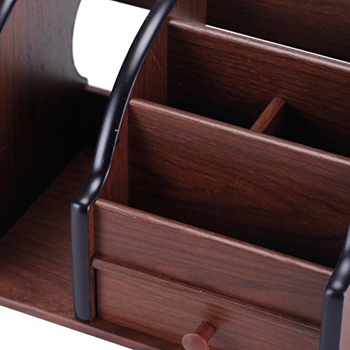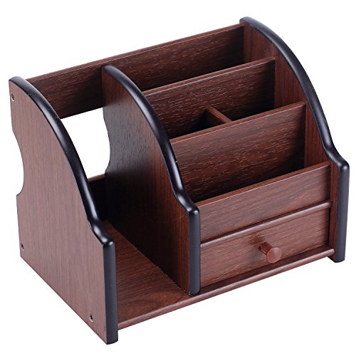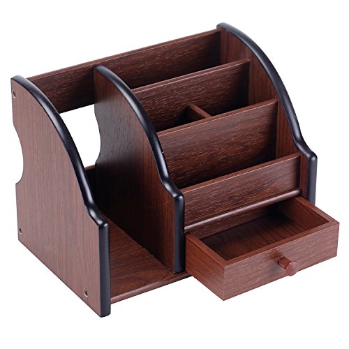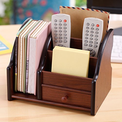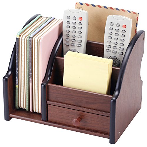 5 Compartment Wood Desktop Office Supply Organizer / Mail Holder Rack with Storage Drawer