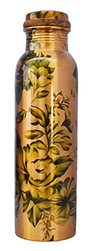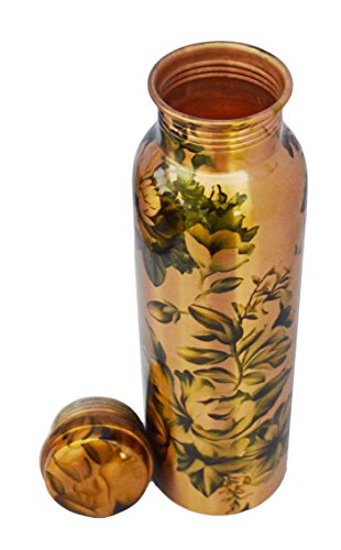 Pure Copper Flower Printed Water Bottle for Ayurvedic Health Benefits Joint Free Leak Proof (copper, 900 ml)