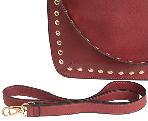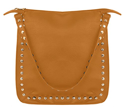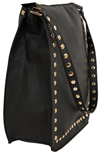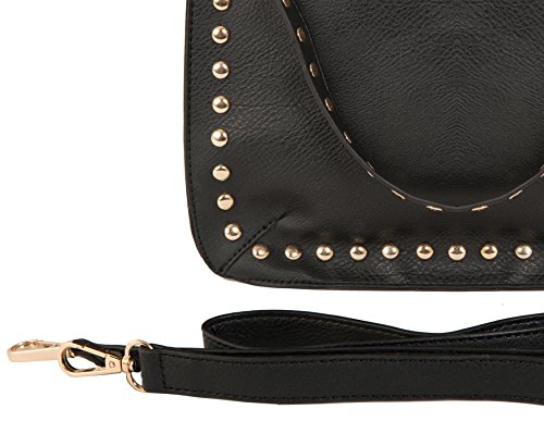 -. Brand : Beaute Fashion -. Color : black -. Department : womens -. Feature : Material: Vegan leather - Hardware: Gold-tone / Incredibly soft and durable material, contains inside zippered pocket and 2 cell phone pockets / Perefct bag for a girl or woman on the go. This bag will easily hold all your daily essentials while lending flair and style to your everyday panache. Gold studded embellishments add glamour and verve to a functional day bag that will take you from morning to night with a dash of style. / This shoulder bag may be worn over the shoulder or as a crossbody with detachable strap. The bag closes with a zipper. Bag has a beautiful studded decoration. Wear it two different ways - Women's Satchel Messenger Crossbody Purse Tote Bag / Measures: 4 3/4 / USA designed, made, and shipped - passes all USA Quality control. -. ProductGroup : Shoes -. ProductTypeName : HANDBAG -. Title : Beaute Bags Valentine Stud Crossbody Messenger Handbag Vegan Leather Multifunctional Women's Shoulder Totebag with Cross-body Detachable Messenger style strap Women's Satchel Messenger Crossbody Purse Tote Bags