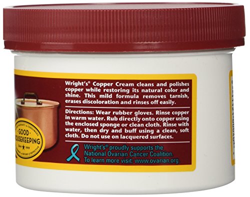 Studio : Wright's Publisher : Wright's Binding : Health and Beauty Product Description Wright's Copper Cream is the perfect choice to clean and restore the color and shine to your copper cookware and other fine copper. Fast-acting and odor-free, Wright's Copper Cream erases the discoloration caused by high heat or food spills. It's easy to apply, rinses off completely, and is gentle enough for everyday use. 0