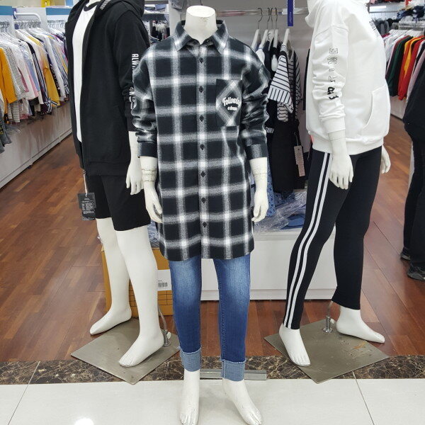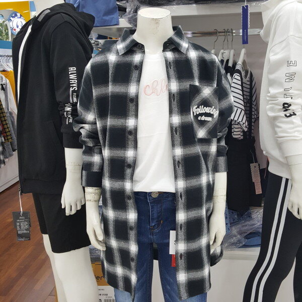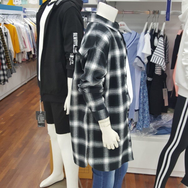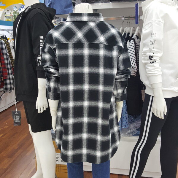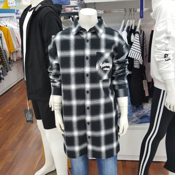 모노 블랙 체크 롱 셔츠 입니다.가디건 처럼 티셔츠랑 레이어드 해입어도 멋스러운 스타일 입니다.