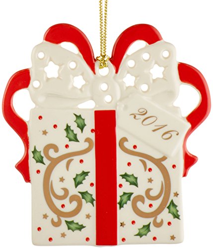 Dated for 2016, this collectible is a beautiful way to remember an important time for every couple. Crafted of Lenox porcelain, this ornament includes a lustrous gold rope with tassel for hanging and comes beautifully packaged in an iconic seasonal red box to make a perfect gift.Feature