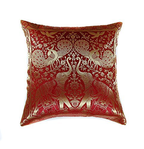Narphosit India Style Elephant Peacock Throw Pillow Cover Decorative Sofa Couch Cushion Cover Zippered 16x16 Inch (40x40 Cm) Red