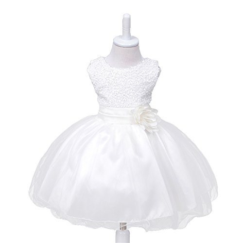 HUANQIUE Baby Girls Wedding Pageant Dress Princess Tutu Dress White 1-2Y