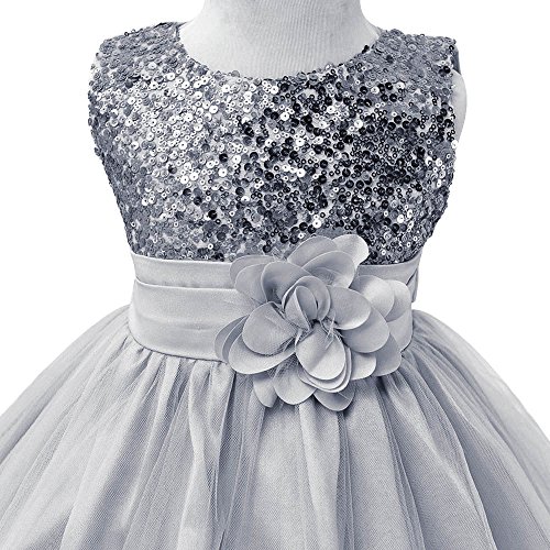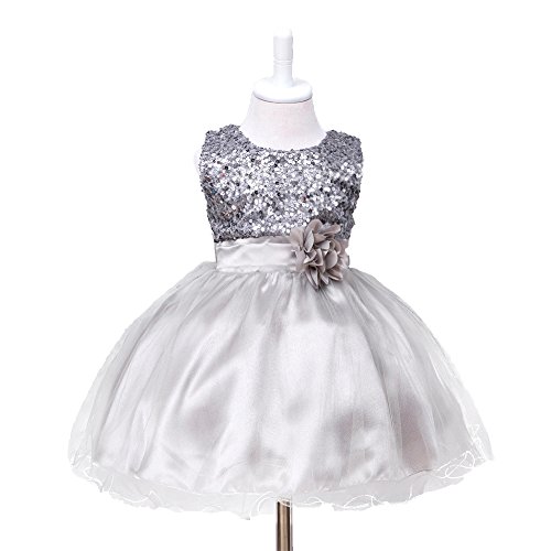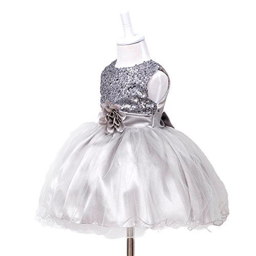 HUANQIUE Baby Girls Wedding Pageant Dress Princess Tutu Dress Grey 2-3Y