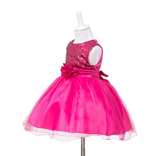 HUANQIUE Baby Girls Wedding Pageant Dress Princess Tutu Dress HotPink 1-2Y